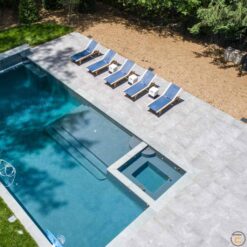 Porcelain stays grippy when wet, especially when chosen it’s texture finish. Use the bluestone porcelain look paver around pools, outdoor showers, and spa areas.