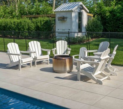 Straight-edge and mitered porcelain pool copings are popular for modern pools because of their durability and clean lines.