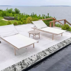 Modern pool copings look clean effortlessly with regular rinsing. This will remove salt and pool chemicals, resulting in a shiny surface throughout the season.