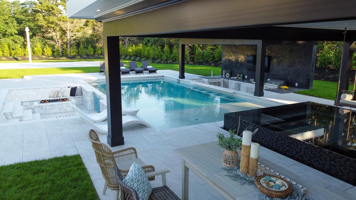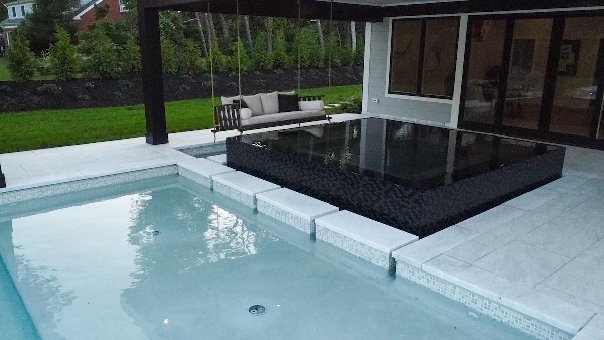 Modern Marble & Porcelain Pool Design in Cape Cod, MA – A Minimalist Masterpiece