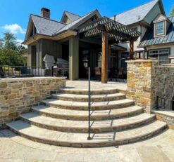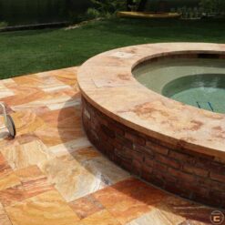 Travertine copings look great on hot tubs, raised spas, fountains, or staircases. The cohesive look ties together all outdoor water features.