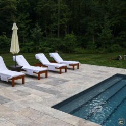 It is one of the most durable natural stone coping that withstands elements such as harsh weather conditions, rain, heat, salt, freezing, and thawing cycles compared to marble pool coping. This makes travertine pool coping a great choice for outdoor pools.